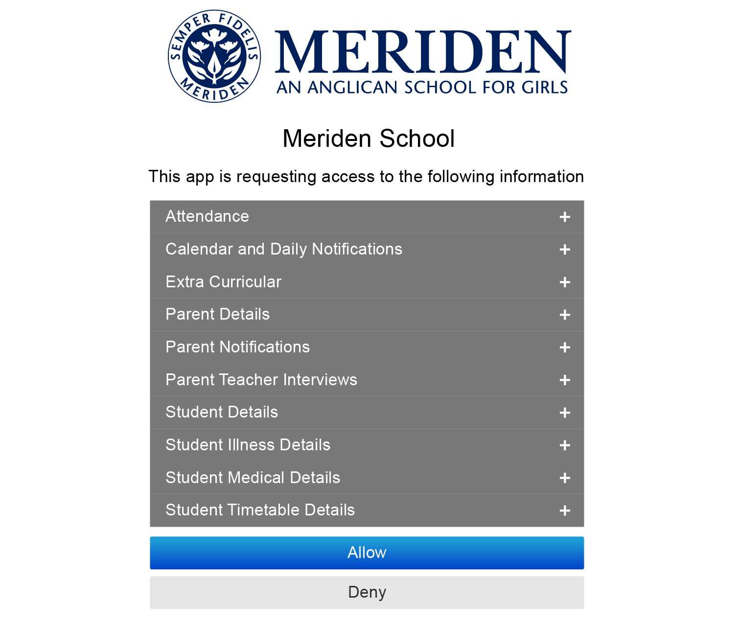 If this does not work, please contact Meriden’s ICT Department on +61 2 9752 9444 or email enquiries@meriden.nsw.edu.au for assistance.
