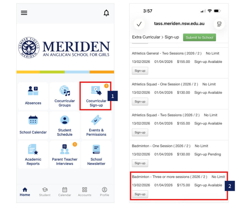 1. Click Cocurricular Sign-up icon.