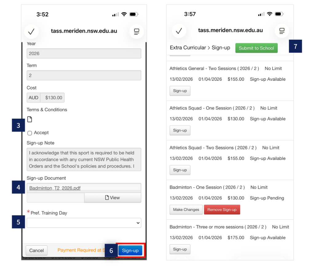 2. Click Sign-up under the relevant activity.