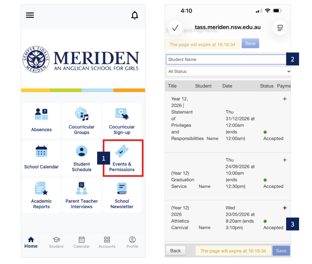 6. Click Accounts for school fee payments & account statements.
