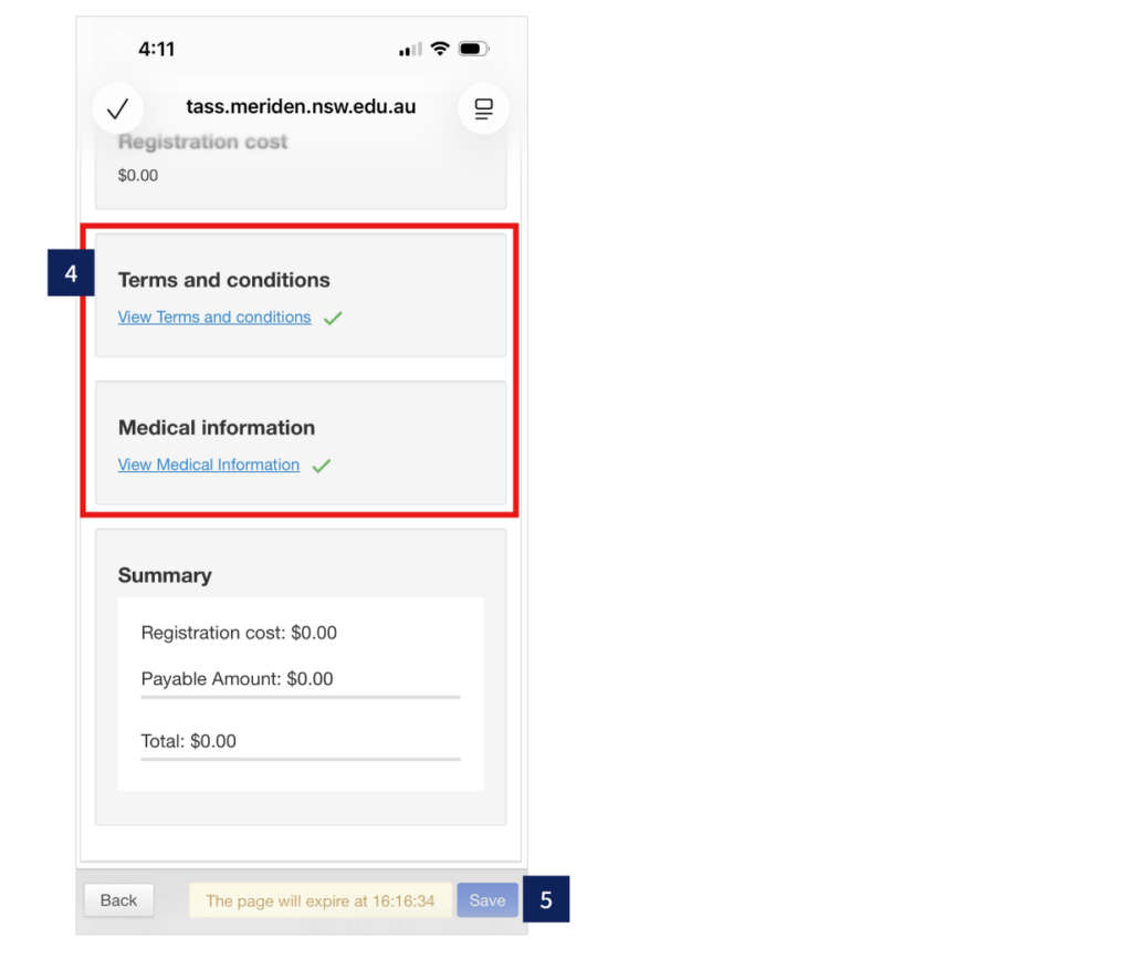 4. View cost (if relevant) and confirm Terms & Conditions and Medical Information.